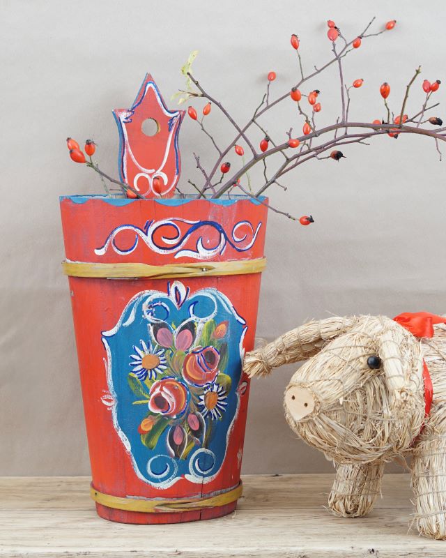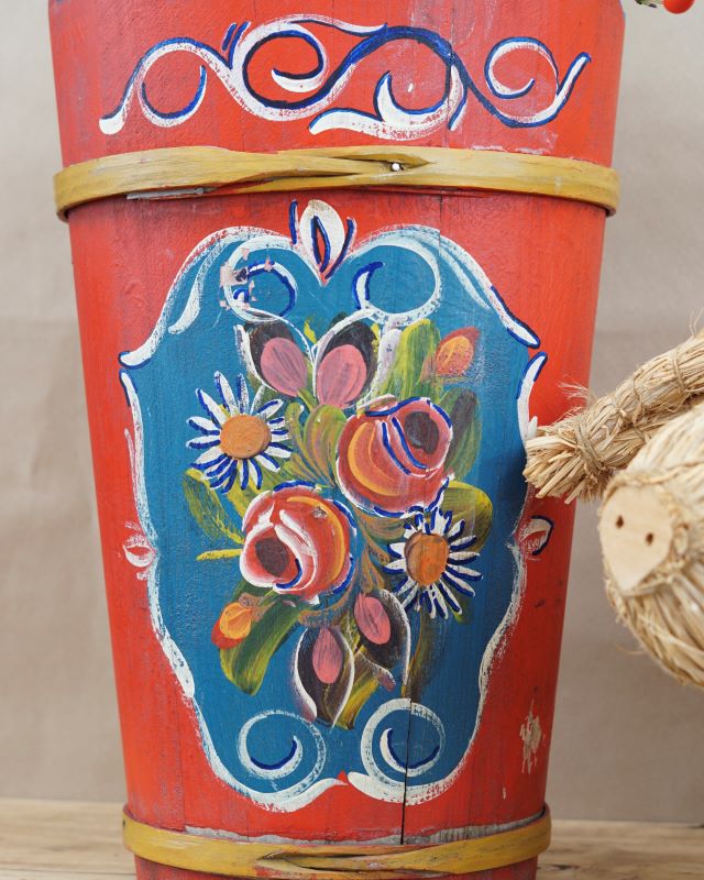 Drewniane ludowe wiadro z Bawarii. Malowane żywymi kolorami. Stan bardzo dobry vintage.