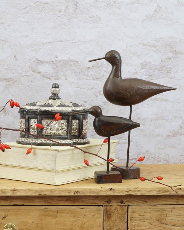Para drewnianych ptaków na metalowej stopce i z metalowymi dziobami. Drewno lakierowane. Stan bardzo dobry. Sprzedajemy tylko set.