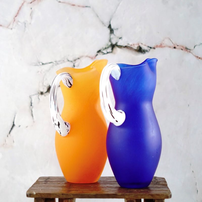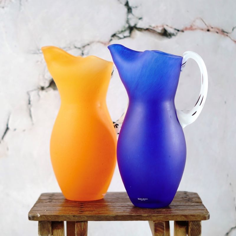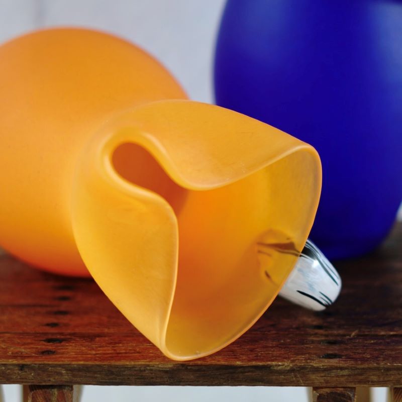 Dzbanki lub wazony Kosta Boda, seria Amazon, Szwecja połowa lat 70 – tych. Design Gunnel Sahlin. Wykonane z mrożonego, dmuchanego szkła na wzór kany. Stan bardzo dobry vintage.