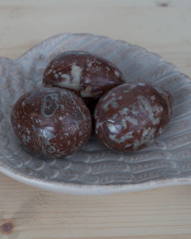 Kamienne jajka z brązowego marmuru.