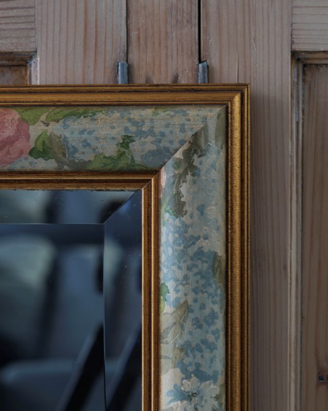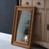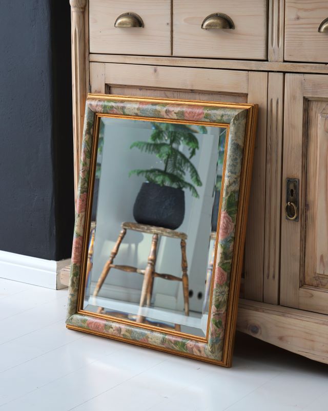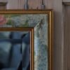Francuskie lustro z kryształową, fazowaną taflą. Masywna, zdobiona rama wykonana jest z drewna. Do zawieszenia w pionie.