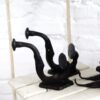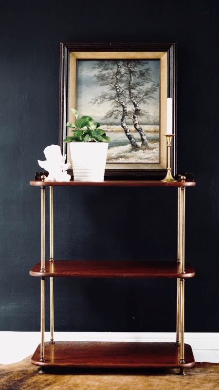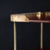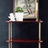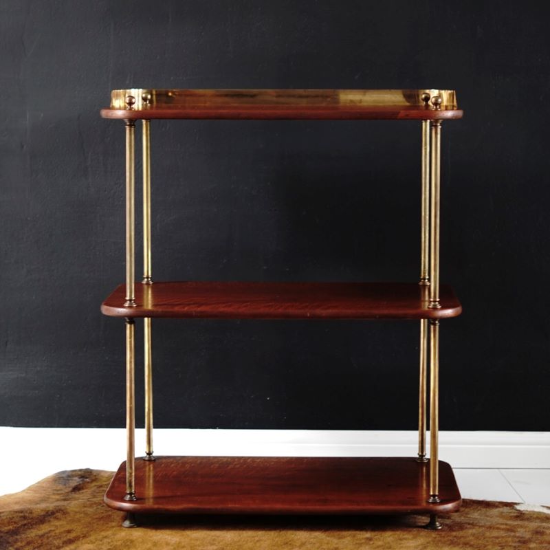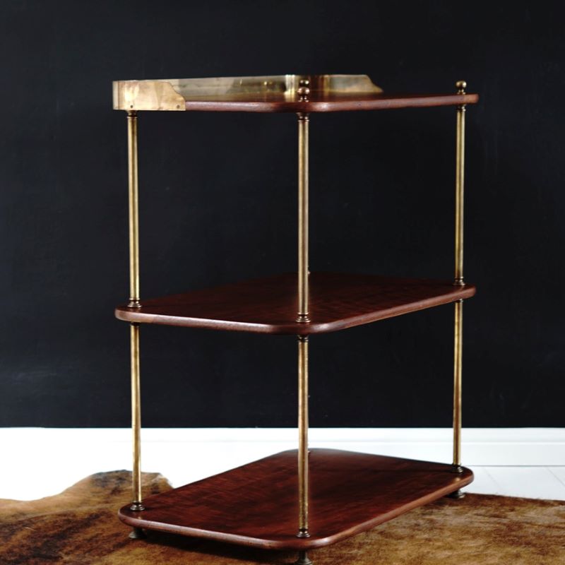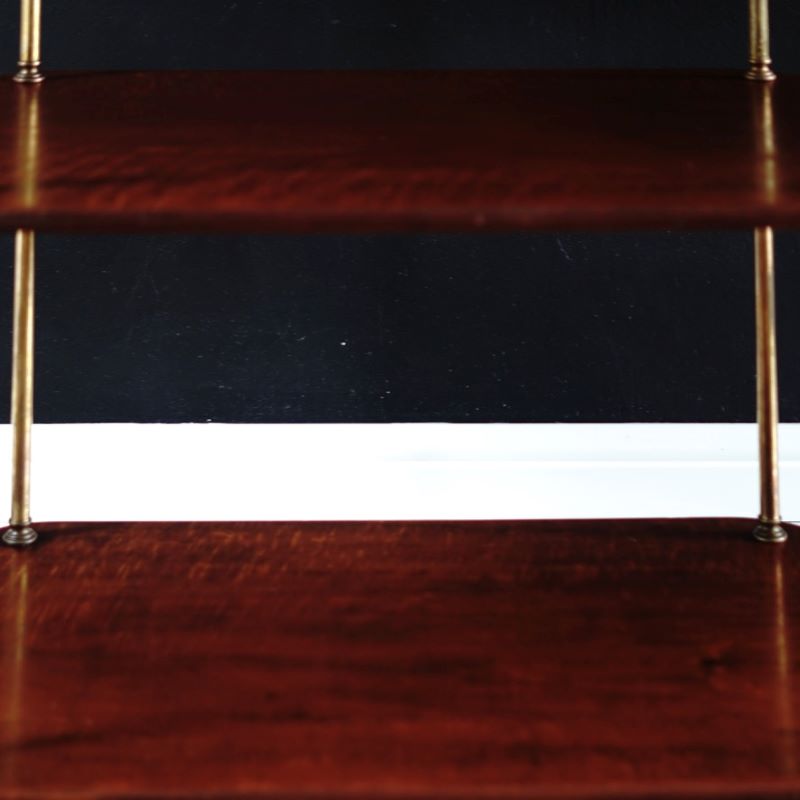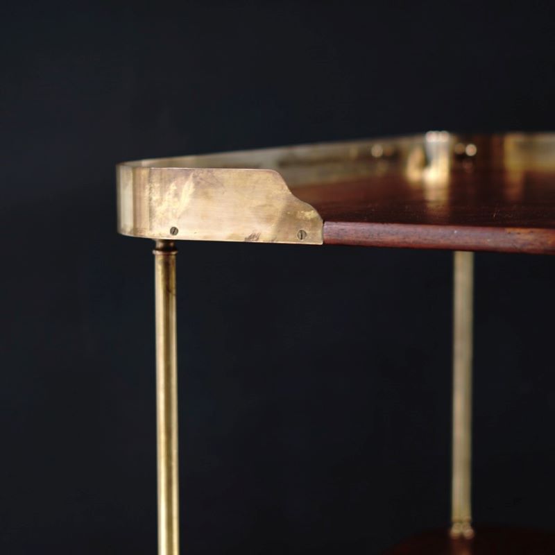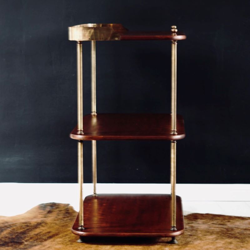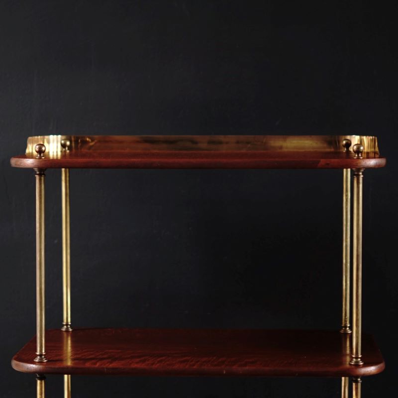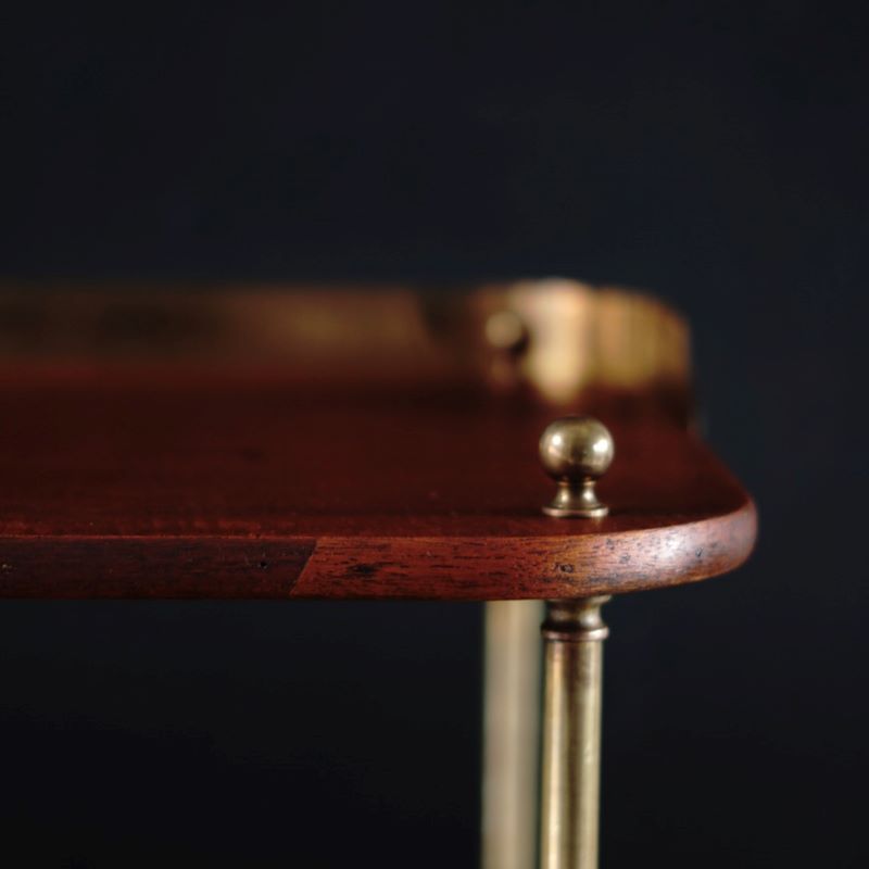 Piękny mahoniowy pomocnik lub barek z przełomu XIX i XX w. Elementy łączące i dekoracyjne wykonano z mosiądzu. Zaprojektowany dla brytyjskich elit, głównie oficerów wojskowych. Elegancka, subtelna konstrukcja sprawia, że będzie pasował do wielu wnętrz. Drewno jest w bardzo ładnym stanie chociaż, ze względu na wiek posiada niewielkie ślady użytkowania. Nie ma plam. Jest porządnie umyty i pokryty środkiem pielęgnacyjnym do drewna. Na mosiężnych elementach widać patynę. Można go w całości zdemontować.