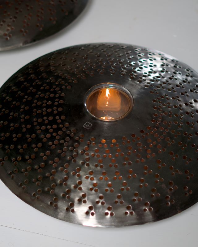 Metalowe świeczniki w kształcie spodków