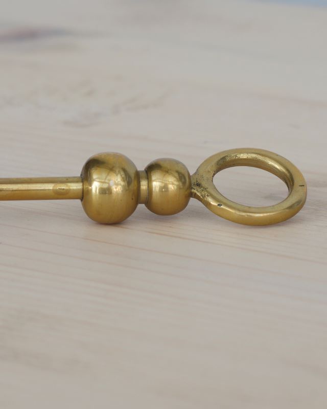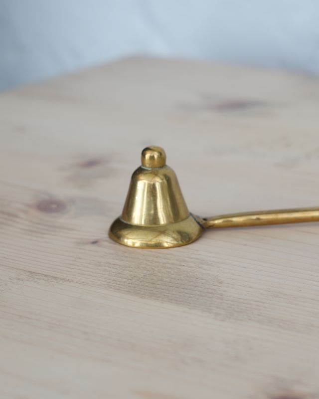 Zagaszacz do świec wykonany z mosiądzu. Mniejszy od poprzedniego, ze statycznym kapturkiem i ładnie wykończonym uchwytem. Stan bardzo ładny.