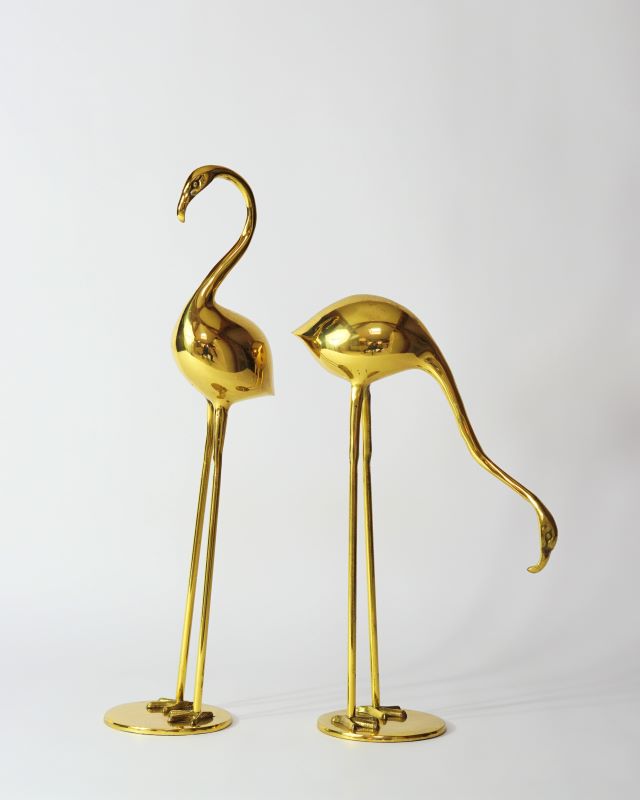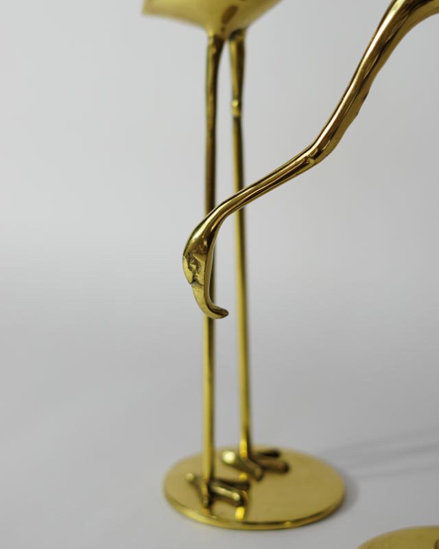 Mosiężne figury flamingów