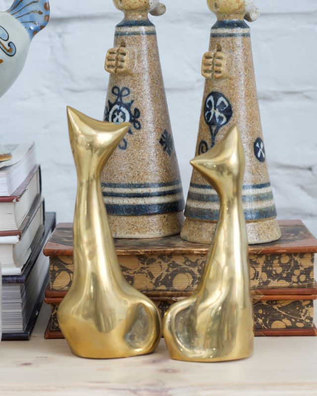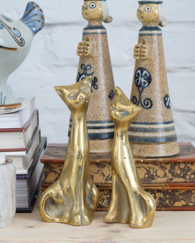 Para mosiężnych kotków. Na mosiądzu ślady patyny, drobne przebarwienia.