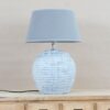 Wymiary: wys. całkowita 65 cm, śr. ok. 15 cm, wysokość podstawy 44 cm, abażur wys. 28 cm, śr. 40 cm