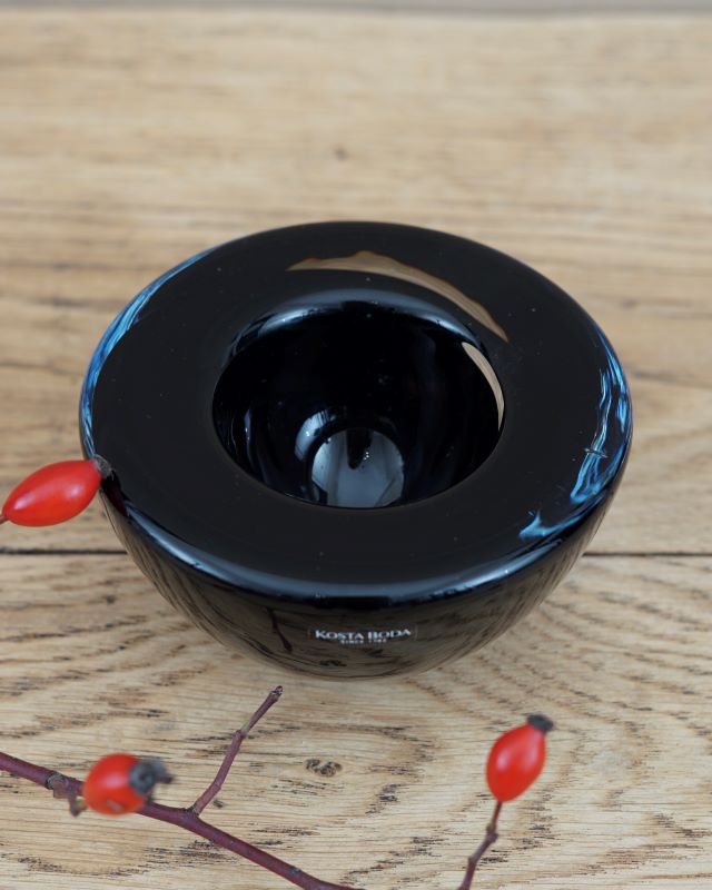 Kryształowy świecznik Atoll szwedzkiej marki Kosta Boda zaprojektowany przez Annę Ehrner w 1984 r. Klasyka szwedzkiego designu w głębokim, czarnym kolorze. Pomieści mały podgrzewacz. Waga 820 g. Wszystkie świeczniki Atoll wykonane są ręcznie i nie ma dwóch identycznych egzemplarzy.