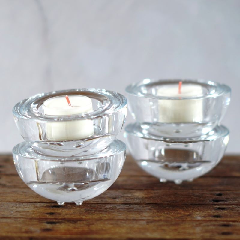 Świeczniki fińskiej wytwórni Iittala wykonane z grubego szkła, seria Ballo
