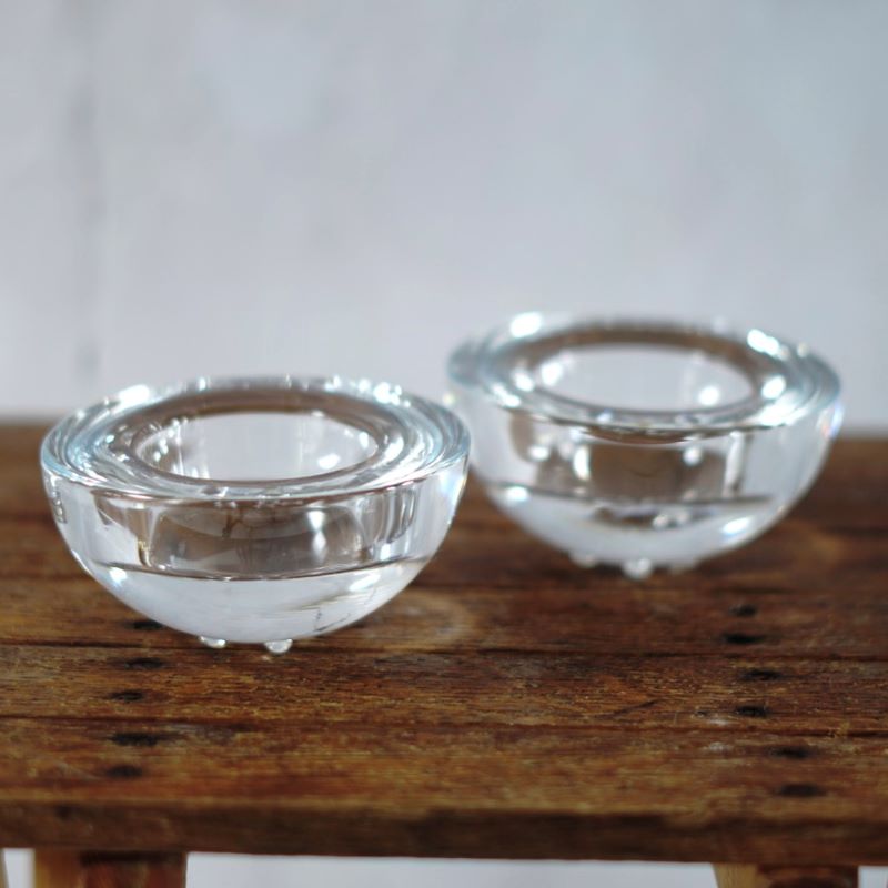 Świeczniki fińskiej wytwórni Iittala wykonane z grubego szakła, seria Ballo. Design Annaleena Hakatie, Finlandia lata 90 – te. Charakteryzują się najwyższą klasą wykonania, szkło jest idealne a kształt doskonale półkolisty. Oszczędna forma. No Finlandia, nie może być inaczej. Wszystko w nich jest doskonałe:)