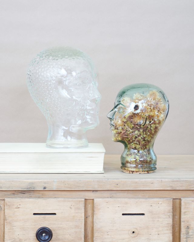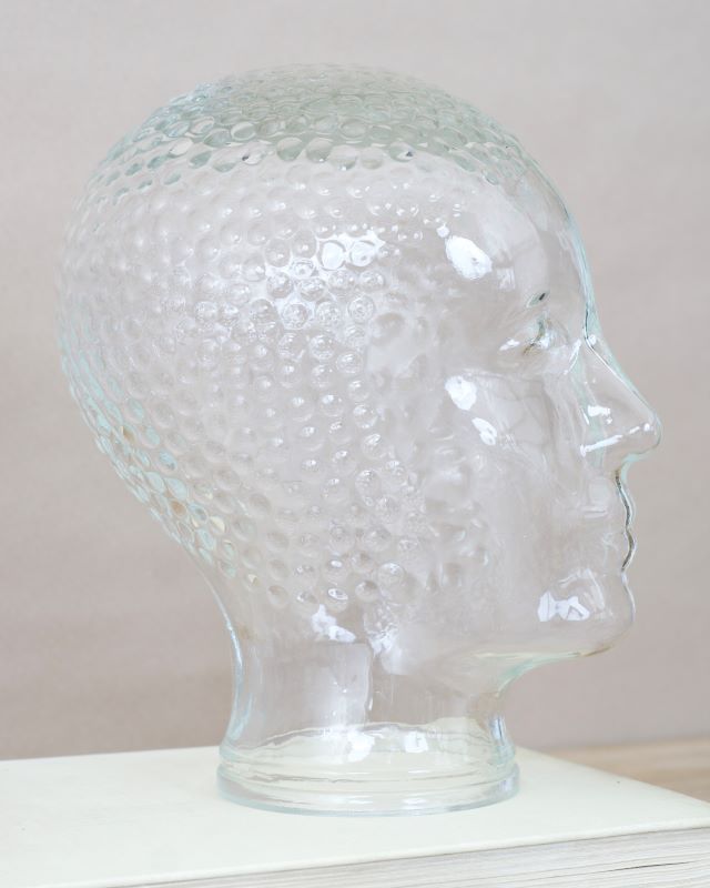 Szklana głowa w klasycznym rozmiarze. Stan bardzo dobry.
