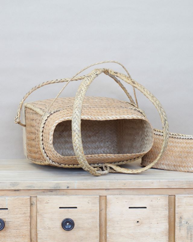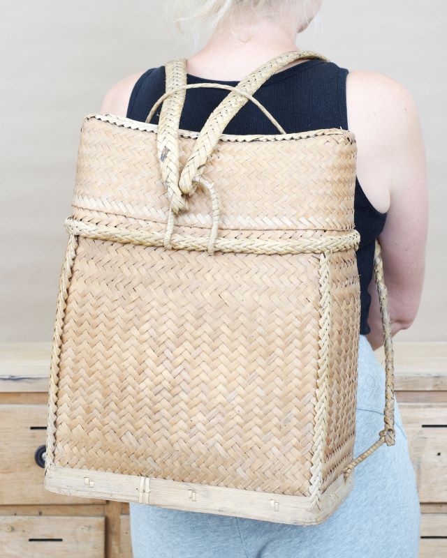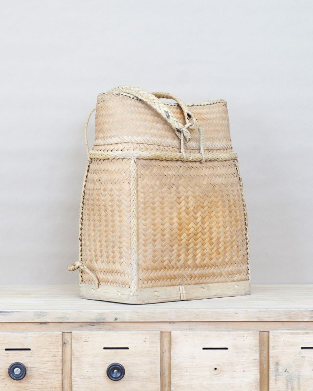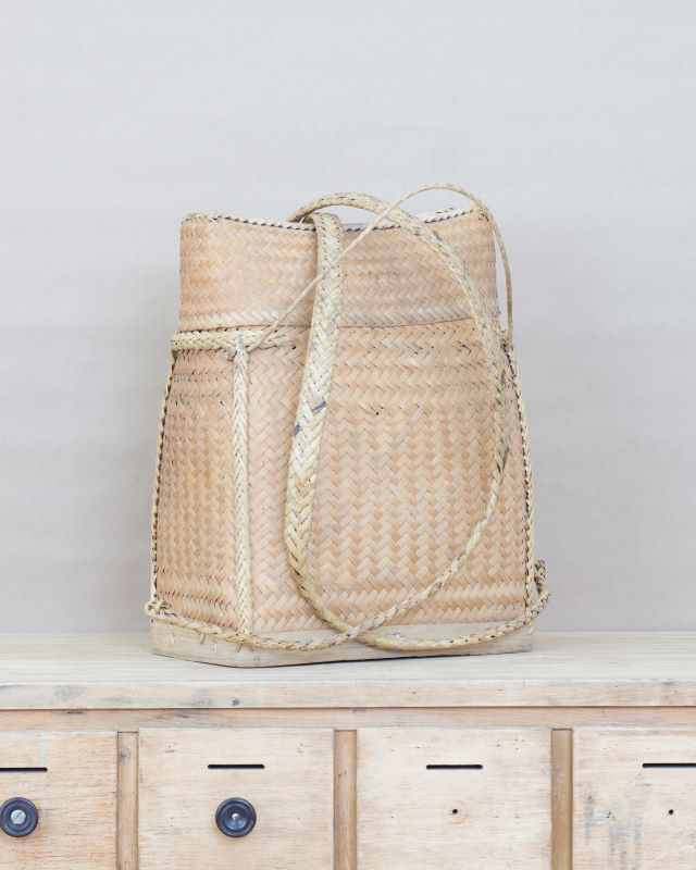 Tradycyjny pleciony koszyk – plecak z Filipin, dokładnie z prowincji Ifugao. Wykonany z naturalnych materiałów. Lekki, bardzo wytrzymały. Nosi niewielkie ślady normalnego użytkowania ale nie posiada żadnych uszkodzeń.