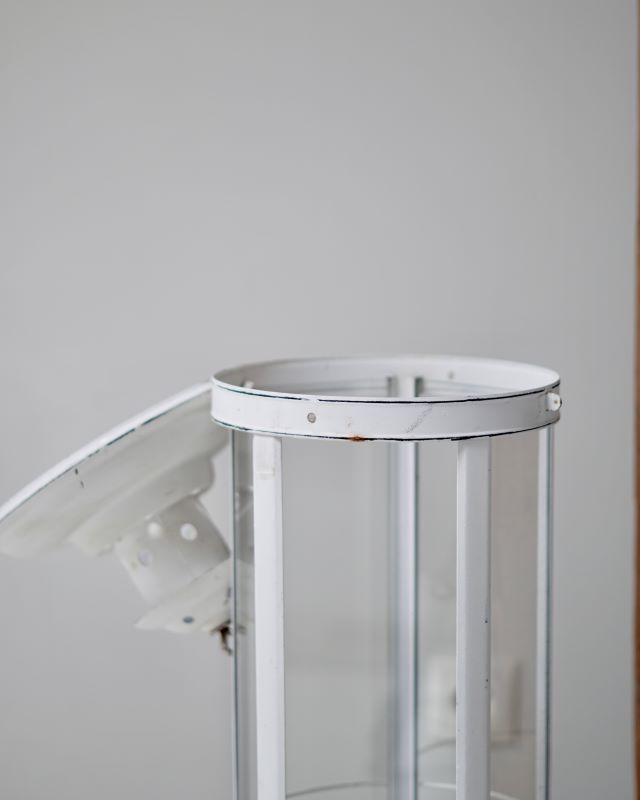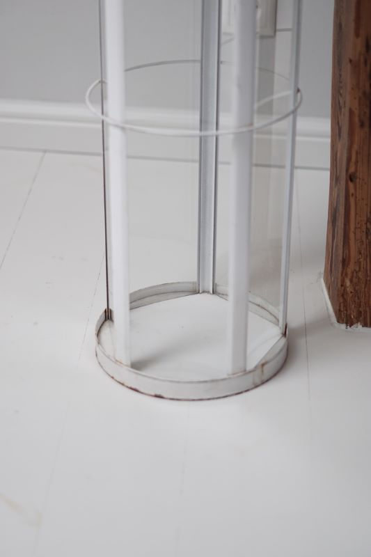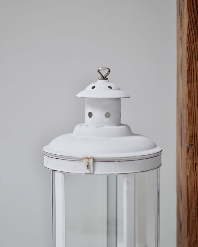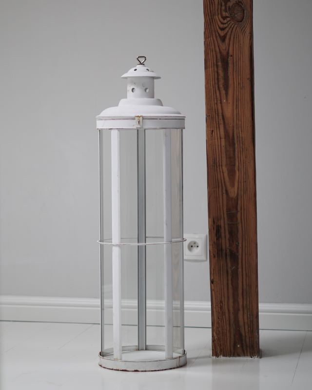 Wysoka, smukła latarnia wykonana z metalu i szkła. Na daszku znajduje się uchwyt umożliwiający zawieszenie latarni. Nosi ona niewielkie oznaki użytkowania ale wciąż jest ładna i może służyć nowym właścicielom. Przeszklenie jest wyjmowane. W tej chwili latarnia została umyta i jest gotowa do użytku.
