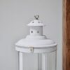 Wysoka, smukła latarnia wykonana z metalu i szkła